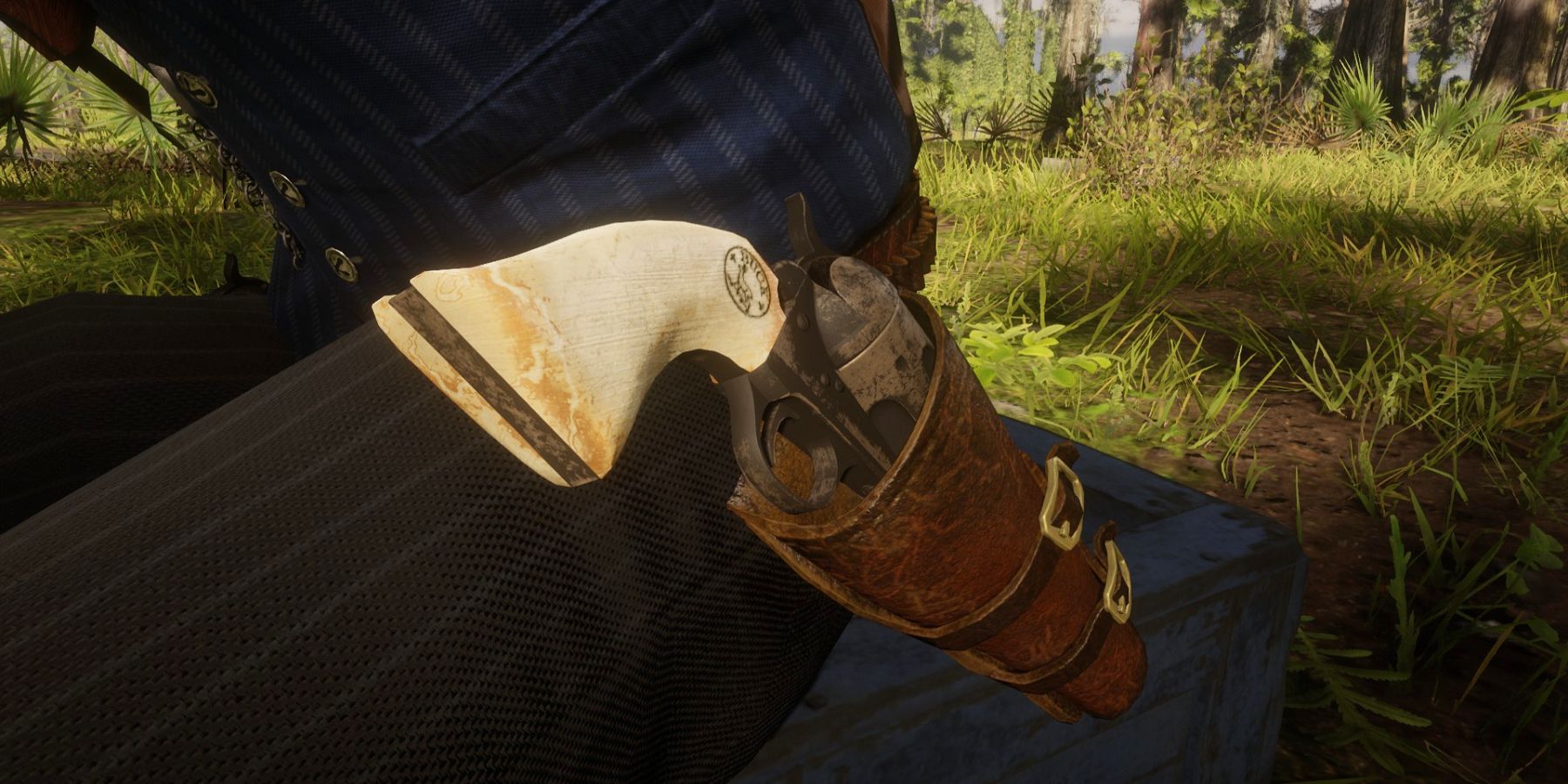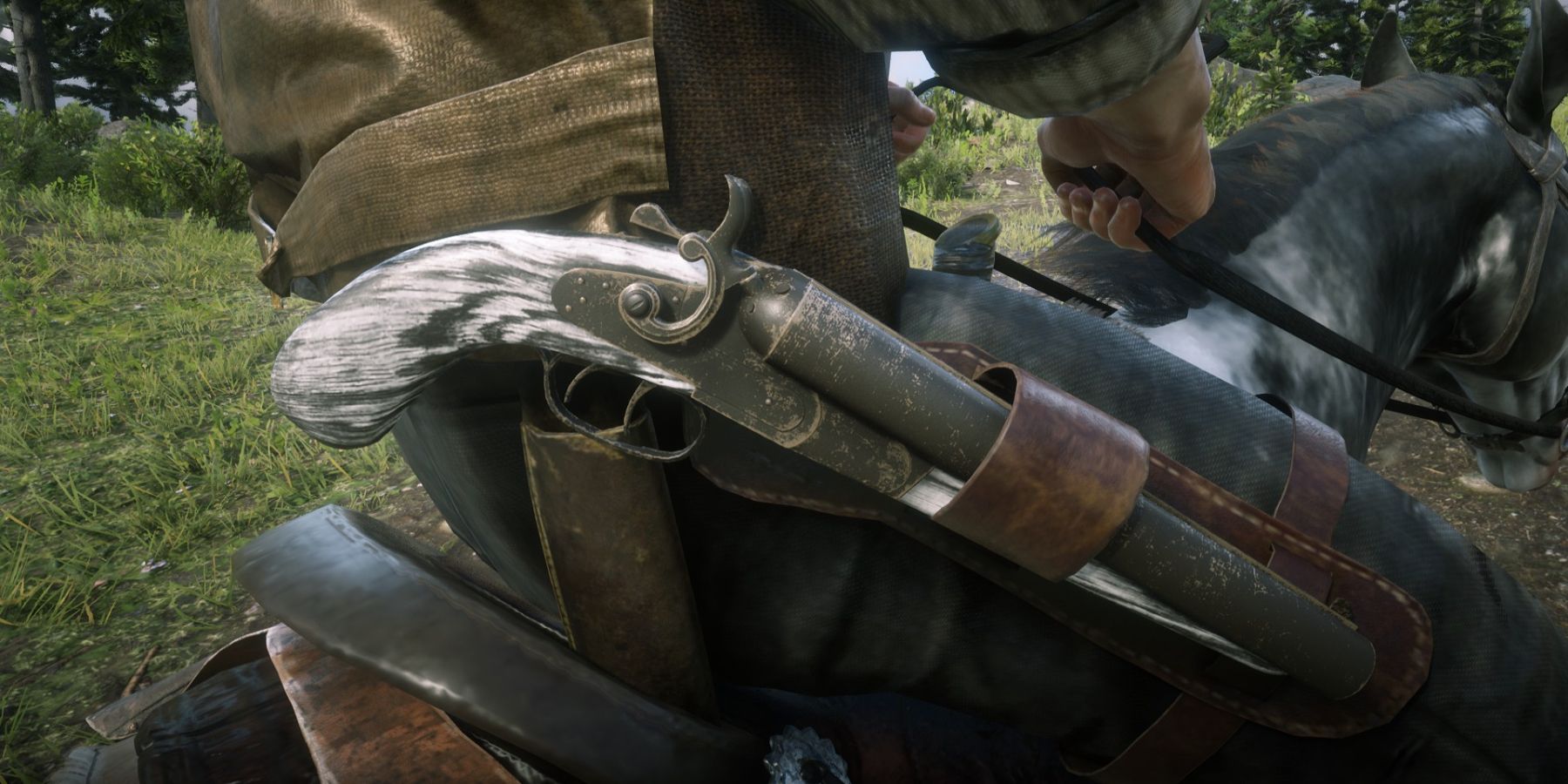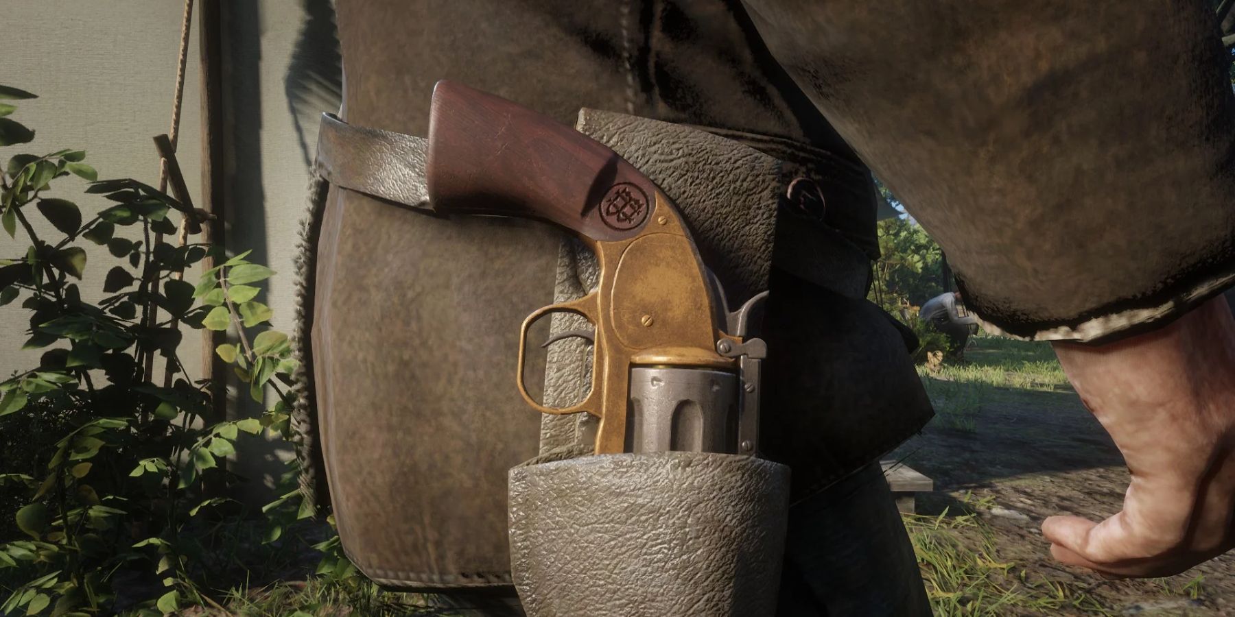 Hosea tragically cannot be saved in RDR2, but his nondescript firearms are a bit more interesting than Sean's. One of two original members of the gang alongside Dutch, Hosea carries a pair of Cattleman Revolvers with bone grips. Most interestingly, Hosea appears to be the only one to wear his holsters oriented for a cavalry draw, with the butts of the handles pointing forward. The cavalry draw is beneficial for fighting on horseback, but there's nothing to suggest Hosea was ever a cavalryman, so he may just wear his revolvers this way to make them more easily drawn while seated in general. This may be a side effect of Hosea's more rational demeanor, compared to Dutch's rash, often violent action.